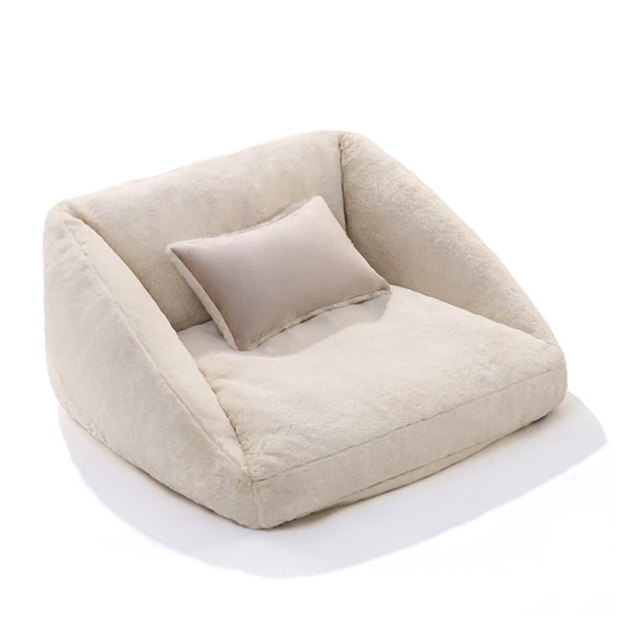 Slashop Large Plush Pink Double Dog Sofa Bed with Cushion - Beige