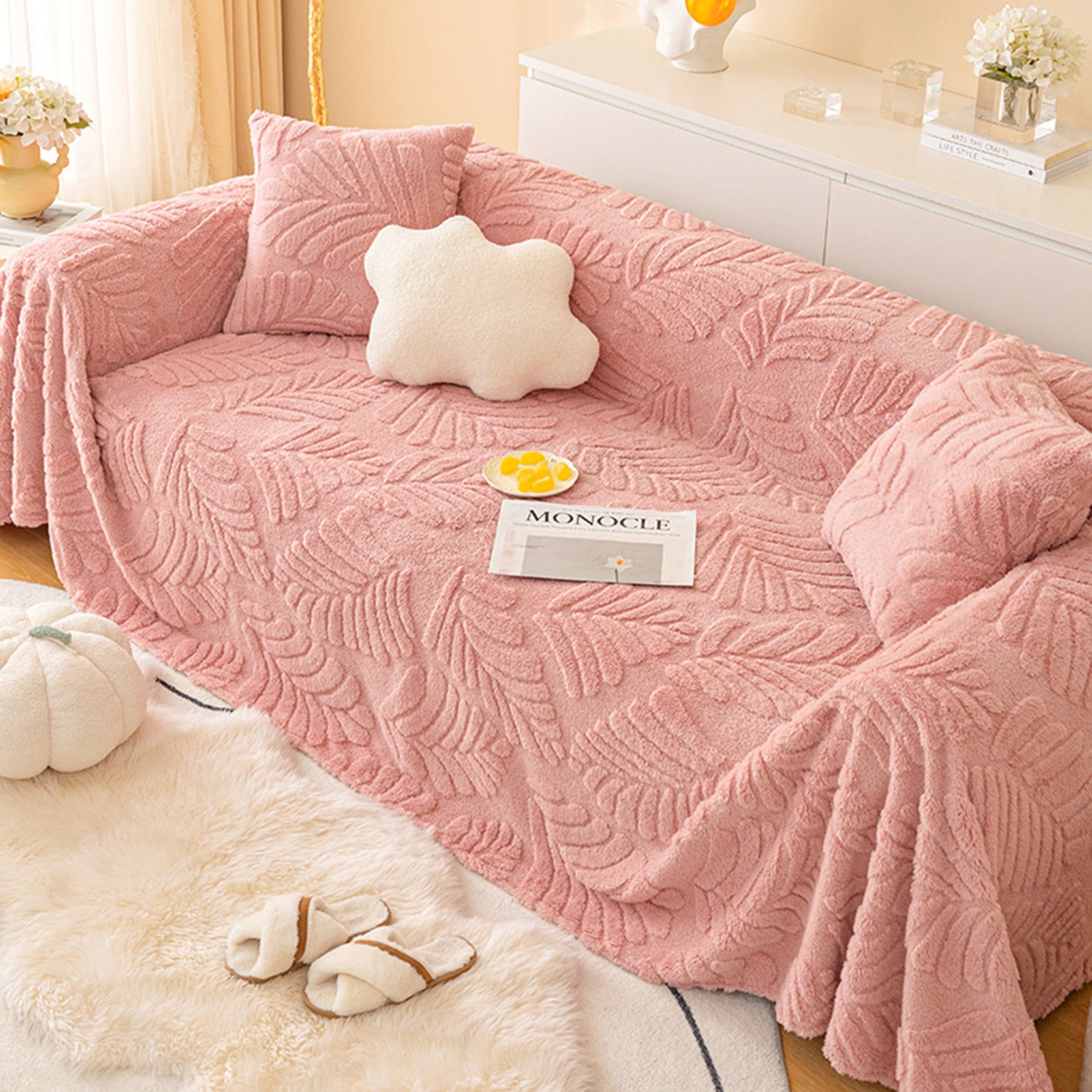 Slashop Cozy Leaves Sofa Cover - Blush Petal