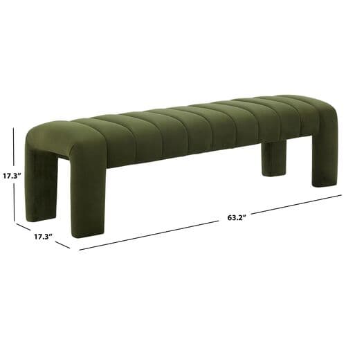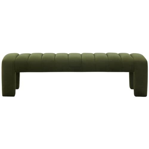Add a stylish and inviting focal point to your space with our Cassia bench. Enriched with luxe material and elegant details, the bench brings elevated style and comfort to any room. A neat channeling detail accentuates the plush contours of our fully upholstered bench. It adds a dose of warmth and character to any corner. Covered in a soft and sumptuous texture, our bench can serve as a plush and luxe accent for your living space, bedroom, or entryway.