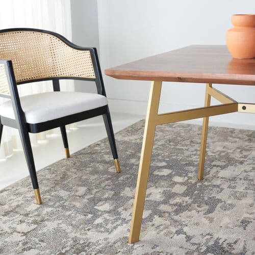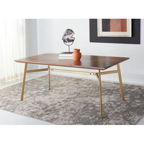 Abner Rectangle Dining Table - Walnut/Gold | Dinner Table, Family Table - Brown