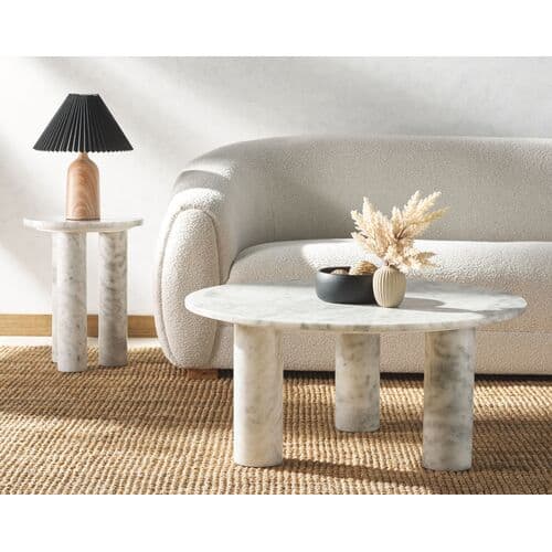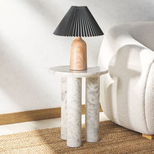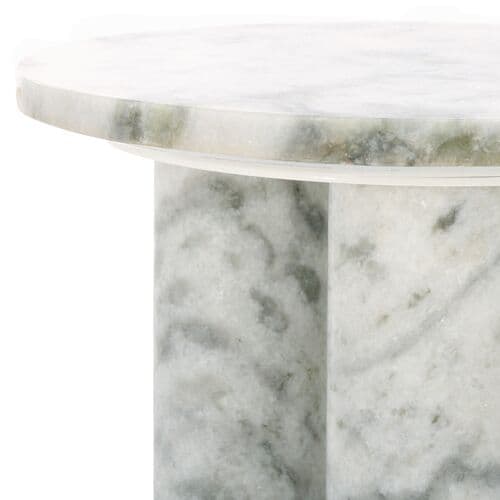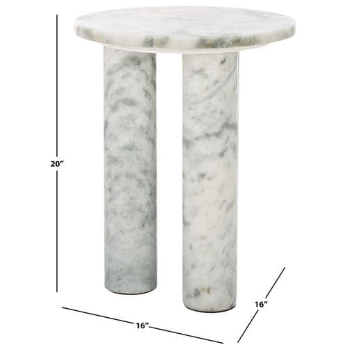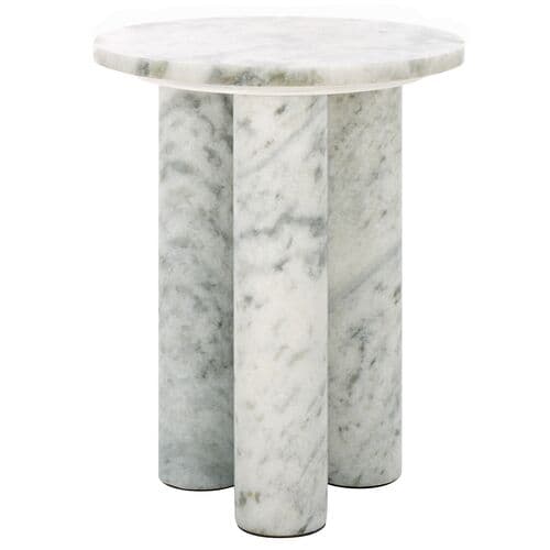 Strike an impact with the graceful and dramatic presence of our Nashan accent table. Crafted entirely from marble, our accent table adds dynamic character and polish to any corner. Its beautiful round tabletop is perched upon three oversized cylinders to make a stunning impact. The accent table is enriched with organic veining to attain a one-of-a-kind character. A contemporary and luxe accent for any corner, the table remains perfect for displaying decor items and keeping essentials within arm's reach.