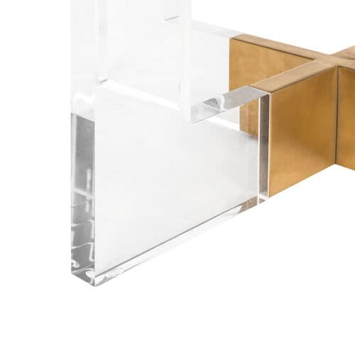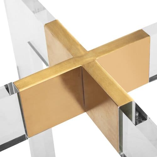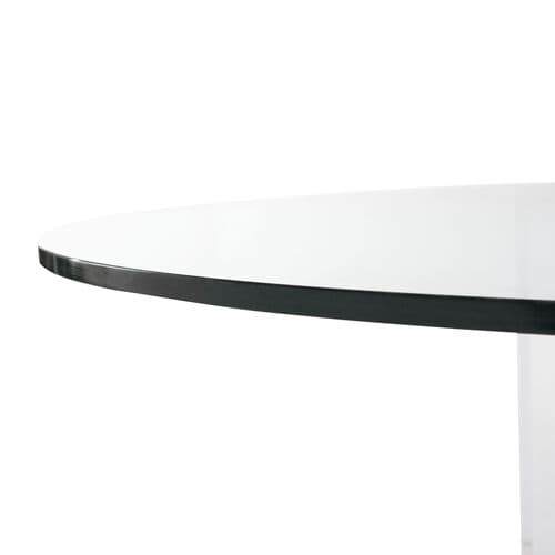 Coveted designer furnishings at NYC���s top auction house inspired this contemporary Round Glass Dining Table. Crafted with a dramatic acrylic base with brass finished stainless steel, its posh glass top brings timeless style to the modern dining room.