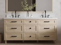 Amazon.com: ARIEL Monroe 72 inch Double Bathroom Vanity with Sink in White Oak, 1.5" Edge Carrara White Quartz Countertop and Backsplash, Rectangle Sink, Soft Closing Doors, Dovetail Drawers, Matte Black : Tools & Home Improvement