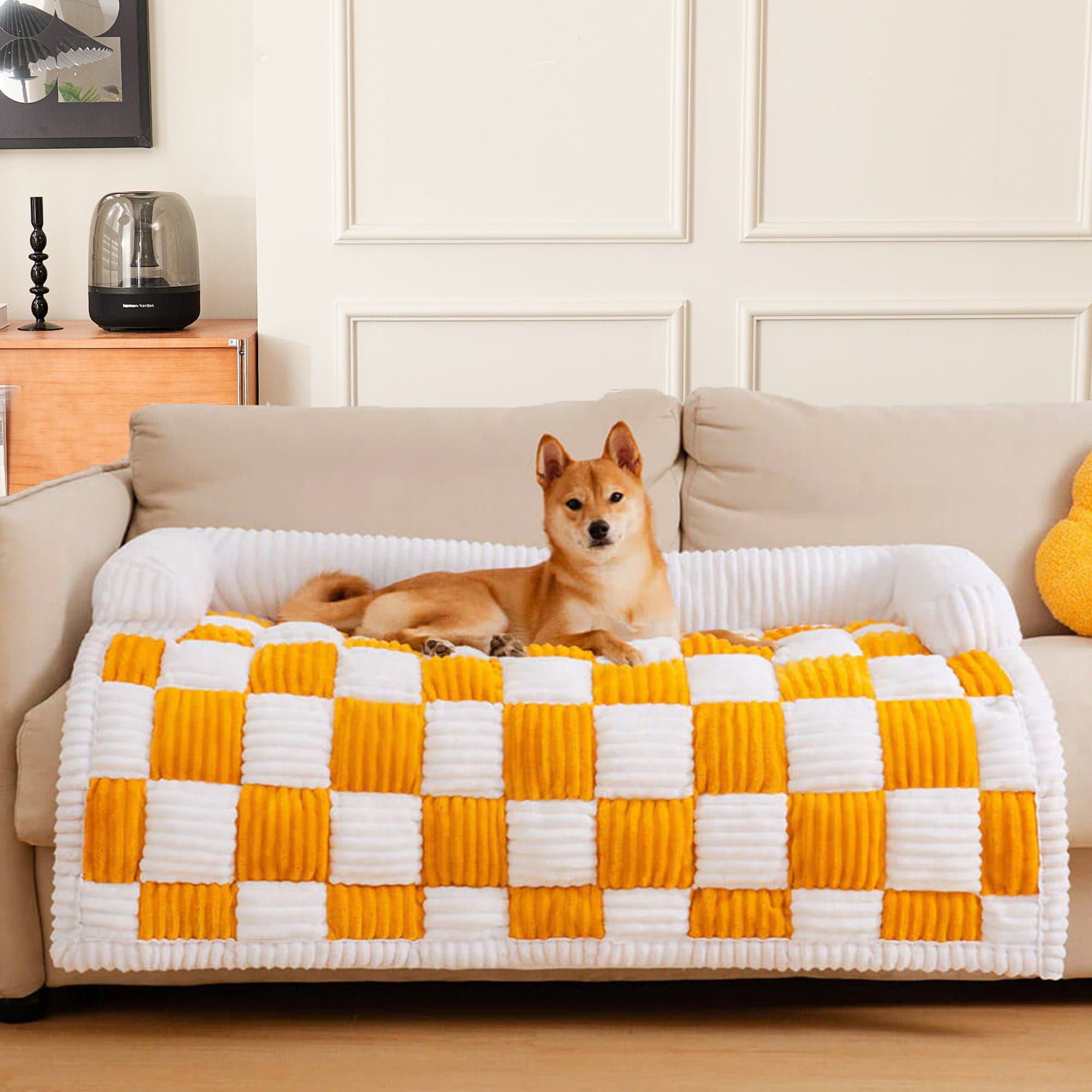 Slashop Cream Square Plaid Cozy Dog Mat Furniture Protector Cover - Yellow