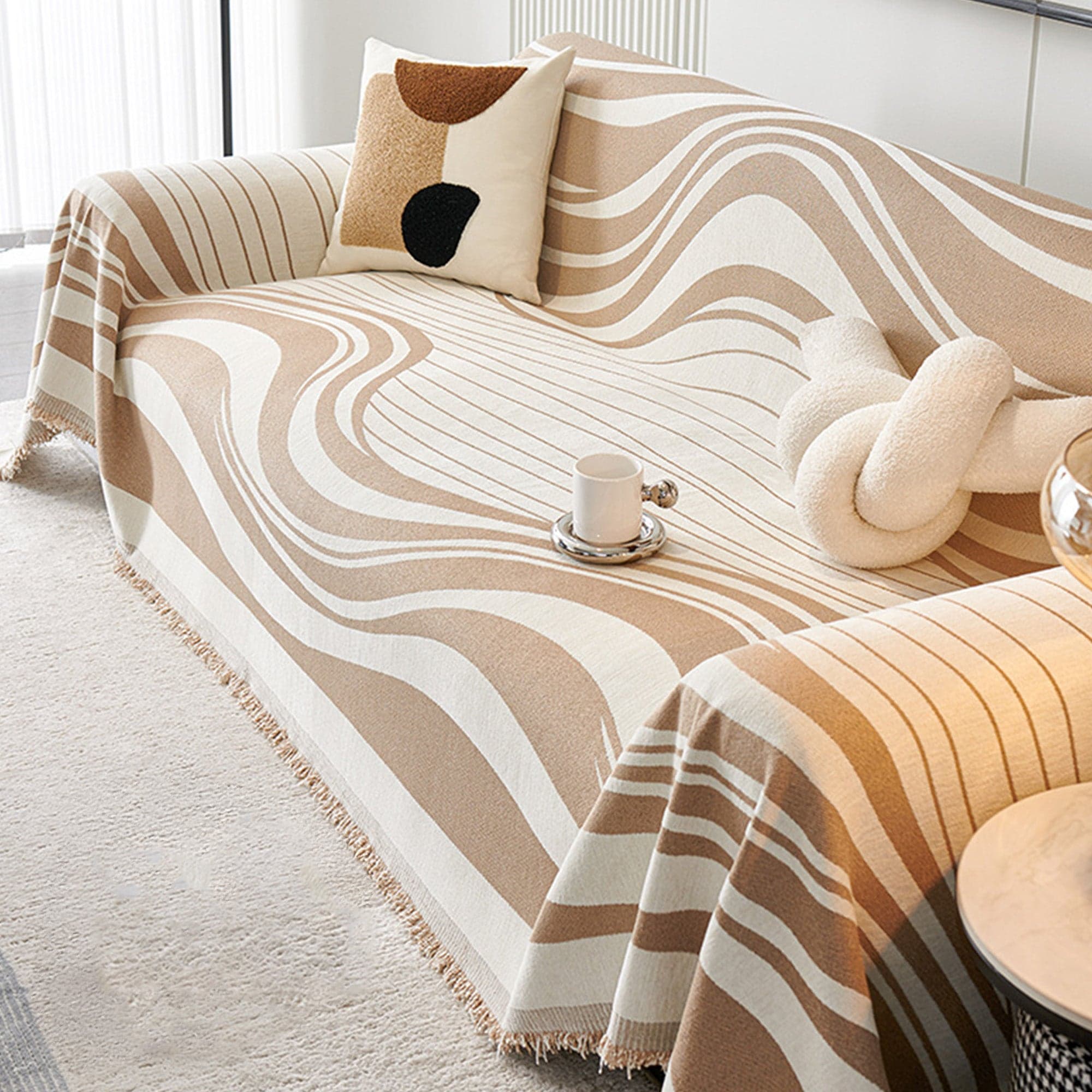 Slashop Modern Wave Pattern Sofa Cover - Sandy Drift