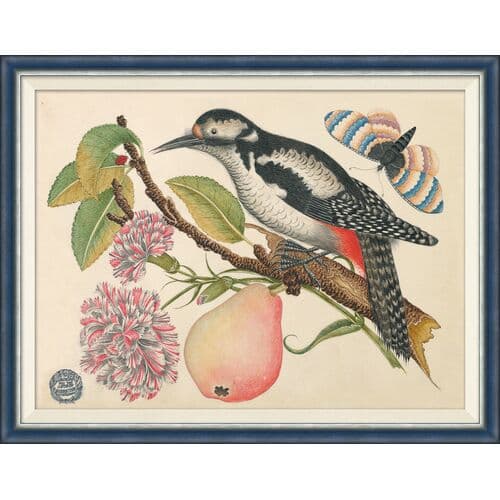 18th Century Floral Bouquets with Birds features a beautifully detailed arrangement of flowers and birds, inspired by 18th-century botanical and zoological illustrations. The composition combines lush, vibrant florals with delicate depictions of birds, all rendered with intricate linework and a rich, natural color palette that evokes a sense of timeless elegance.