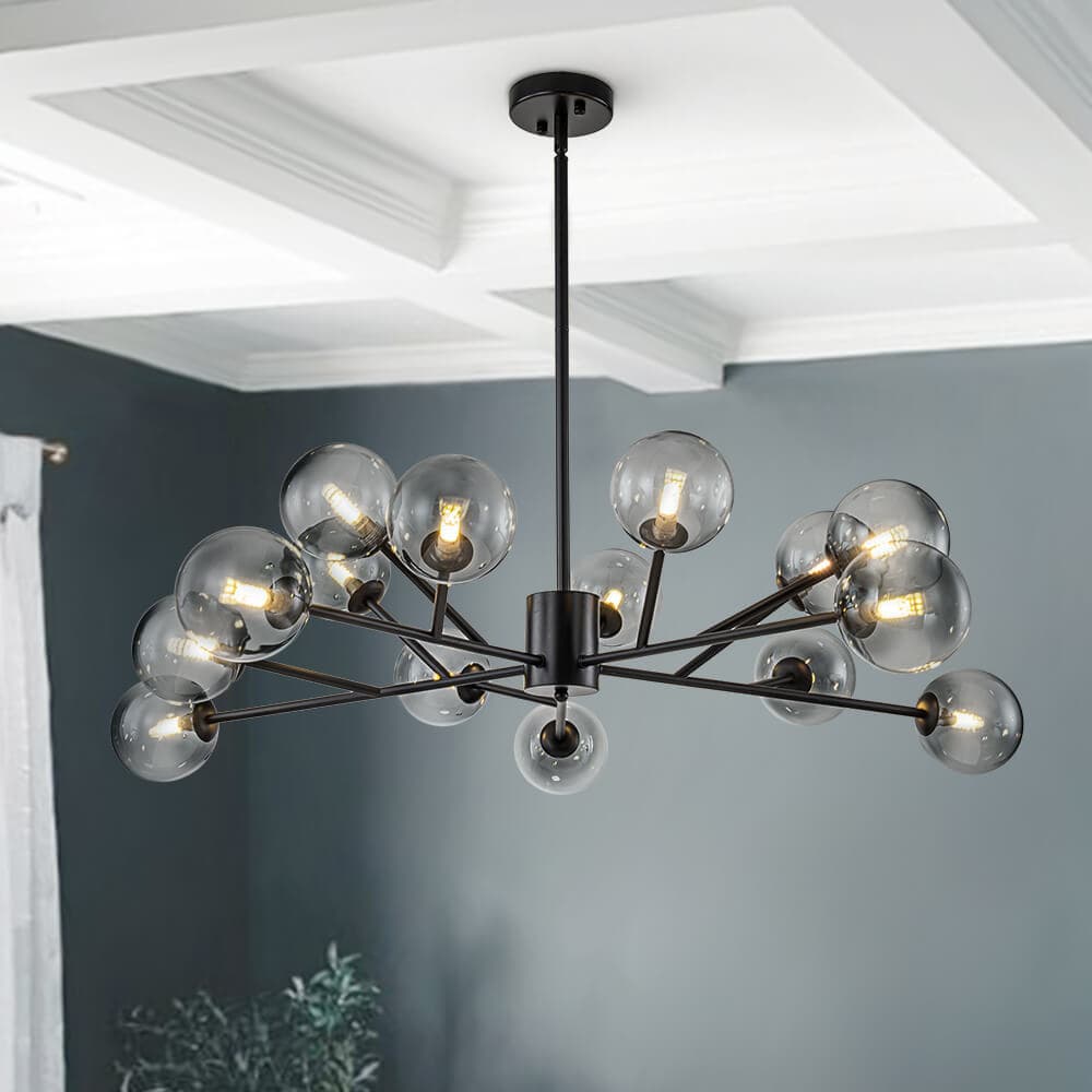 Modern 15-Light Smoked Gradient Glass Globe Chandelier