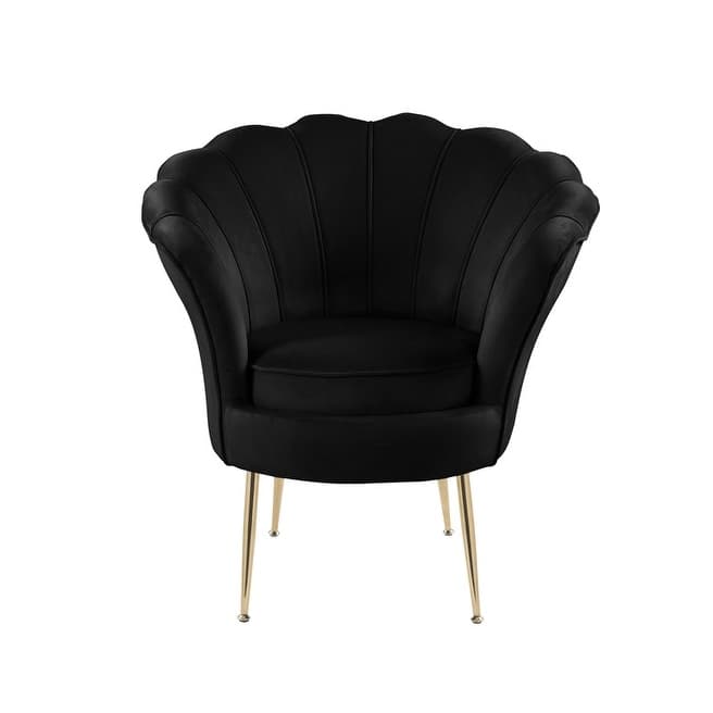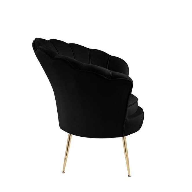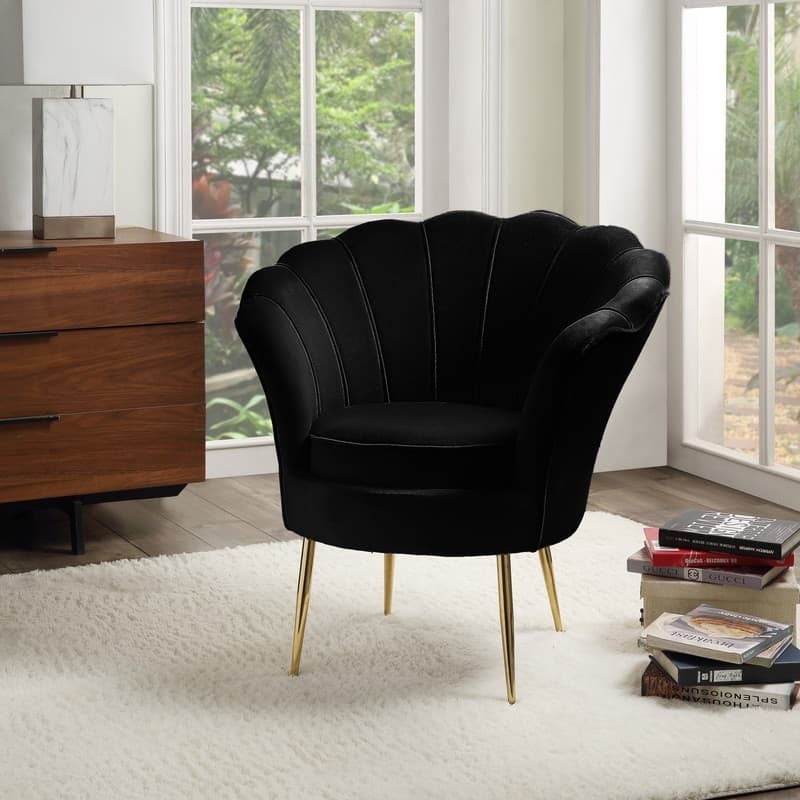 Product Features: Glam up your home with the modern Angelina beautiful velvet accent chair! The fabulous design of the seashell edges, vertical tufting, and gold legs will dazzle you and your guests in any room setting. Beautiful from any angle, Naomi will add a visually striking appeal to your living room, bedroom, lounge room, entry way, and more. Available in many colors that will complement your home's specific decor.