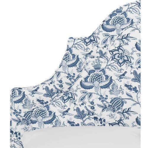 Crafted with fabric by Cloth and Co. exclusive to One Kings Lane, this bed boasts a blue-and-white floral cotton upholstery over a beautifully arched frame, adding a vibrant edge to your bedroom. The substantial padding ensures a soft, supportive backdrop for reading and relaxation. Mattress and box spring are necessary. Handcrafted in the USA.