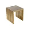 Benjara 17 In. Gold Slatted Design Square Metal Accent Stool with Luxurious Brushed BM314975