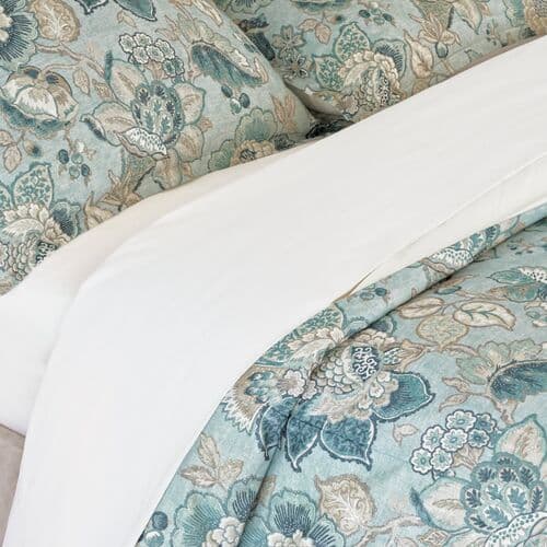 Featuring a large floral pattern inspired by classic Indian block prints, this cotton duvet cover enlivens any space with its design. The reverse side is a bright white, adding a fresh contrast.