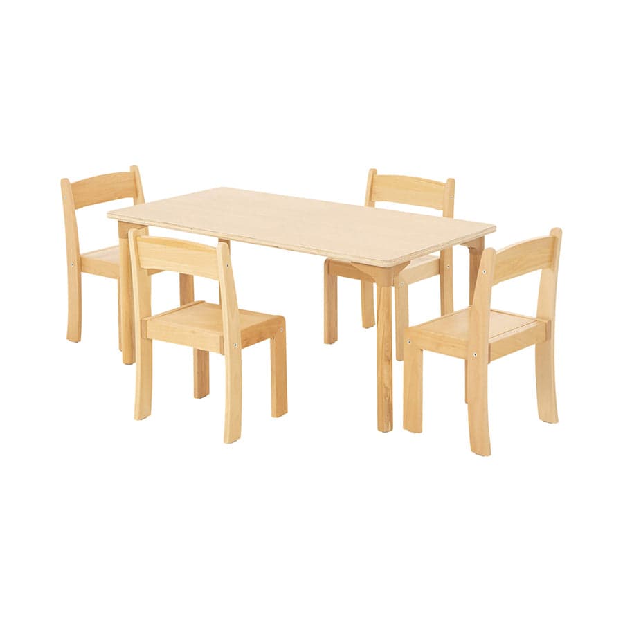 Our beechwood rectangle tables ages 3 to 8 is made from a combination of furniture grade beech plywood tabletop and beech solid wood legs. Plywood is excellent at resisting sharp and heavy blows and is more scratch resistant than a solid wood - its water resistance also makes this wood an ideal choice for the early yea