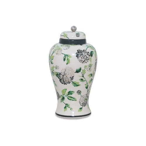 Inspired by vintage styling, this porcelain ginger jar is adorned with vibrant floral patterns and a crackled glaze. Finished with a coordinating lid, it offers a touch of elegance.