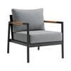 Armen Living Crown Black Aluminum and Teak Wood Outdoor Lounge Chair with Dark Gray Cushion SETODCRBLBX1