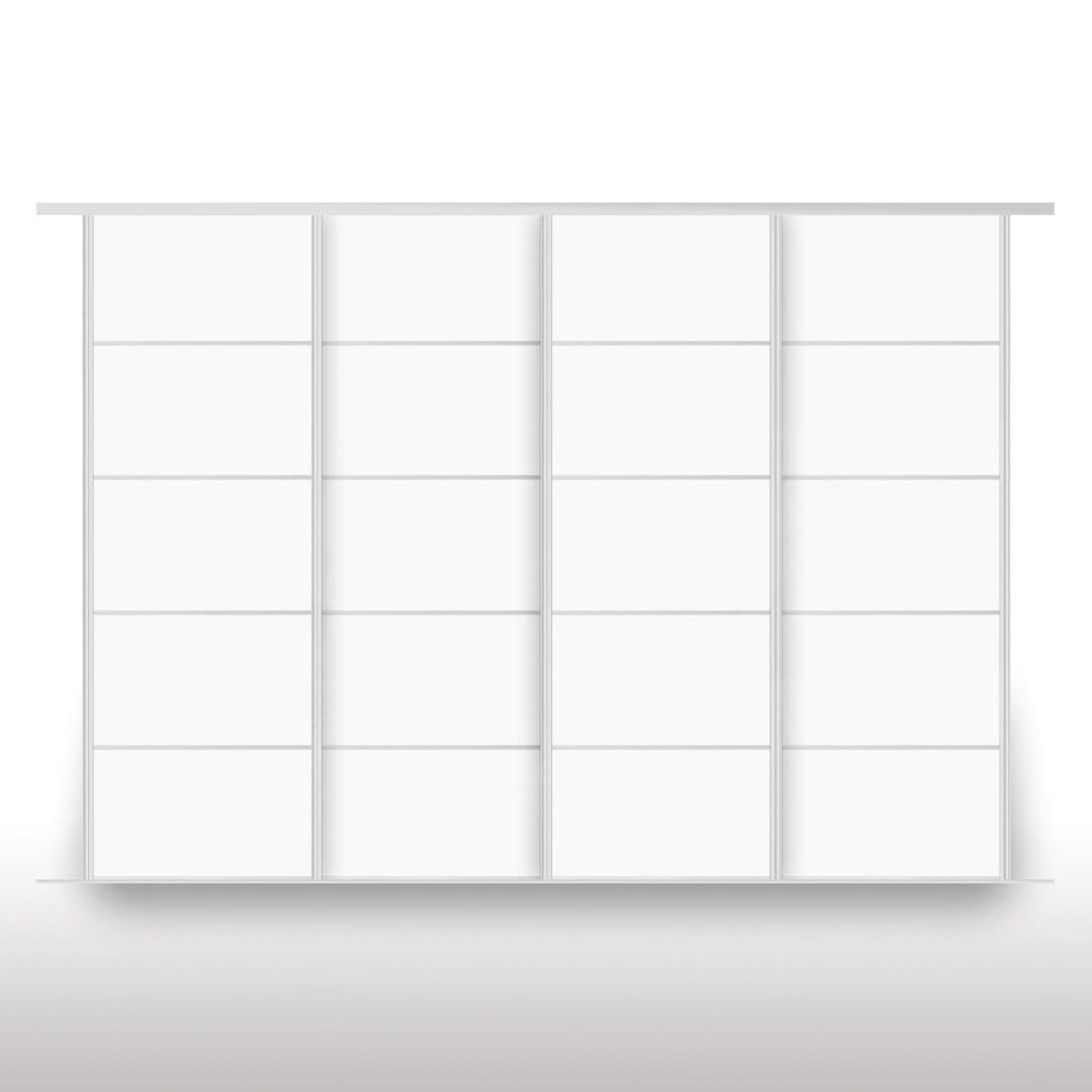 4 door sliding wardrobe. Our uniquely quiet sliding system comes flat pack and is sold as DIY (must be assembled.) You will receive a comprehensive easy installation manual along with the required doors, track & rail and bumper tapes.