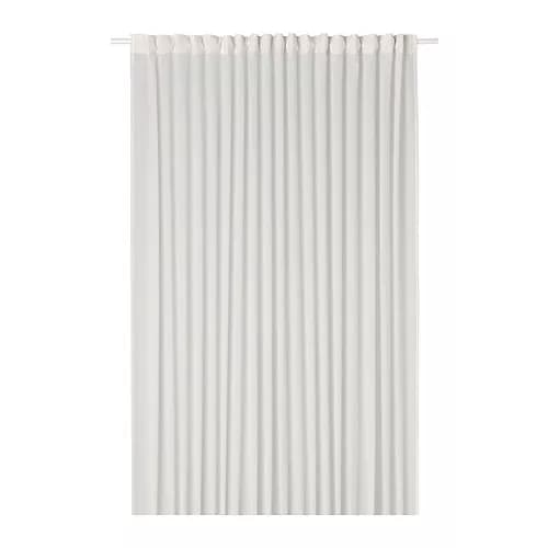 The sheer curtains let the daylight through but provide privacy so they are perfect to use in a layered window solution. The large size covers wider windows and also makes the curtains suitable for use as a room divider with an appealing texture on both sides. The curtain fabric falls softly and pleats perfectly adding a decorative touch to your window treatment. Curtains with heading tape allow you to hang the curtain directly on the curtain rod using the rod pocket or tabs. You can also hinge the curtain onto a track rail using gliders and hooks. Using gliders and hooks usually creates a more formal and dressed-up feel, where hardware is not visible.