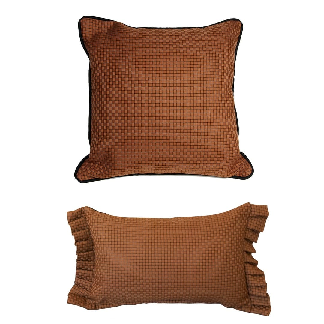 The WELL DRESSED BED Orange Tan Spice Basket Checkered Accent Pillow 16x12, 16x16