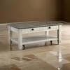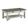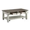 Modern meets functional with this chic cocktail coffee table. It is made from durable rubberwood in classic white and brown finish and exudes sophisticated charm. Two drawers with smooth gliding tracks offer discreet storage atop its spacious lower display shelf. Sleek black knobs accentuate the design, with convenient caster wheels for mobility. Check out our Rome collection for more like this.