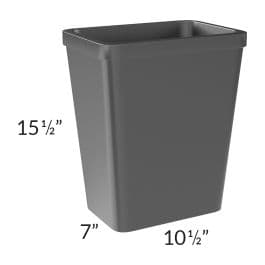 Width 14-1/8" | Height 15-1/2" | Depth 9-15/16" Trash can to be used with the BWBKT18 trash can pullout base cabinet. Order a qty of 2 for 2 trash cans.