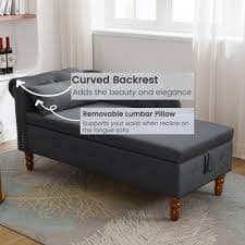 Amazon.com: Velvet Lounge Chair Indoor,Modern 58" Chaise Lounge with Storage & Pillow,Tufted Upholstered Rolled Arm Sleeping Lounge with Nailhead Trim for Living Room,Bedroom,Office (Black) : Home & Kitchen