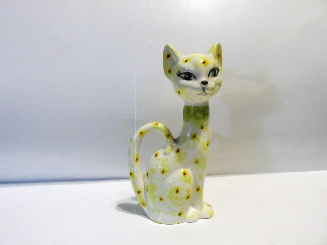 MCM hand painted elegant cat figurine. Please check pics for details. Stands 6.25 inches tall. Has crazing. Thank you so much for looking...