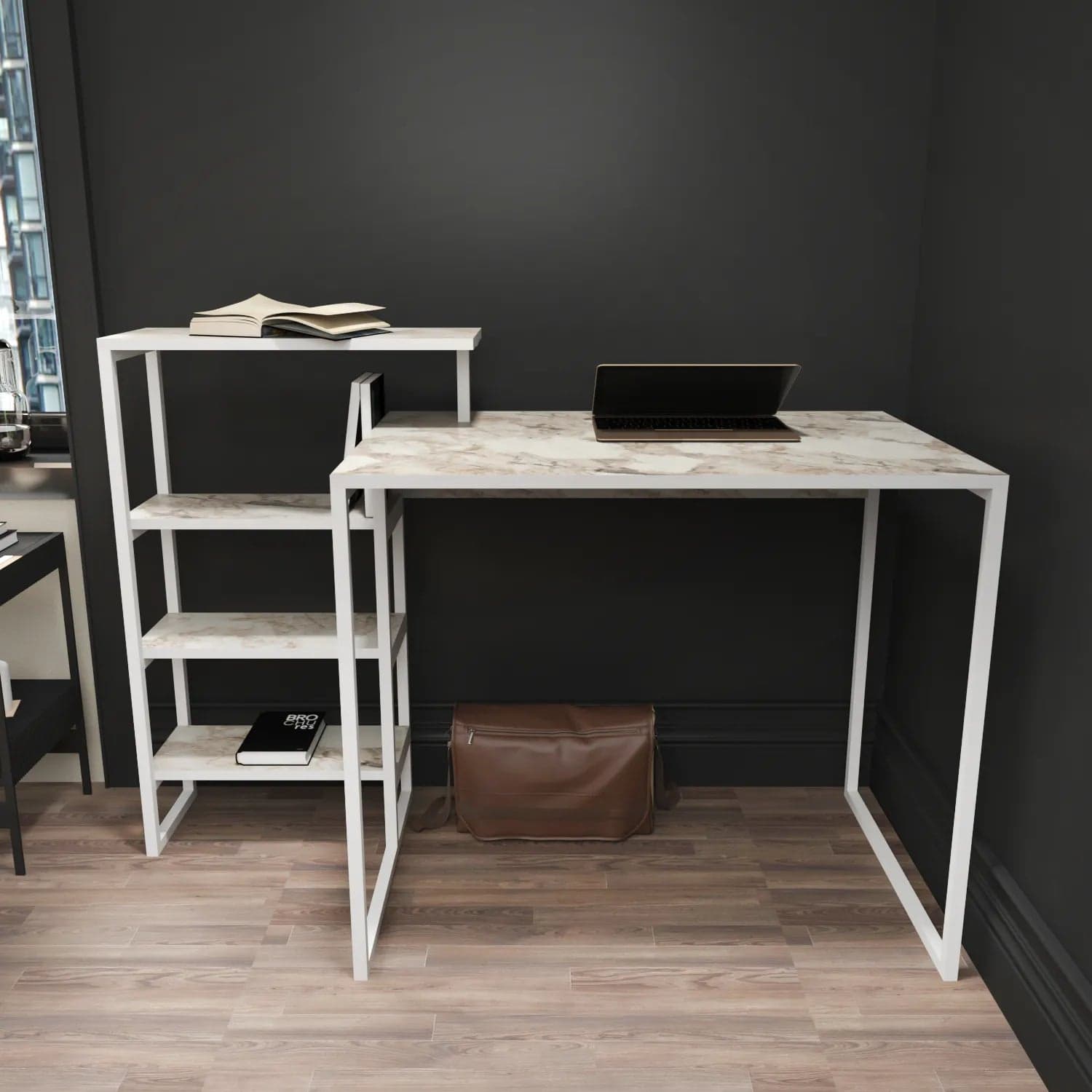 Enhance your home or office with the stylish Rino computer desk. Its metal frame and spacious shelves provide an attractive and functional storage solution for your books and decorative items. Easy to assemble with included hardware and instructions, it's a perfect choice for any space. Upgrade your workspace today!