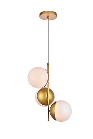 Refined style with a practical design, Eclipse hanging pendant lamps bring cosmopolitan sophistication anywhere, especially to an entryway, office, bathroom, bedroom, or kitchen. The smooth iron frame features a disk-shaped canopy and comes in a brass finish. An adjustable black cord allows you to vary the hanging height from 23.6 to 96 inches. A touch of color on top of the frosted white spherical glass shade brings character to this classic style. Living in the big city has never been this easy.