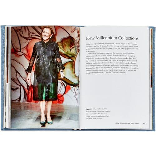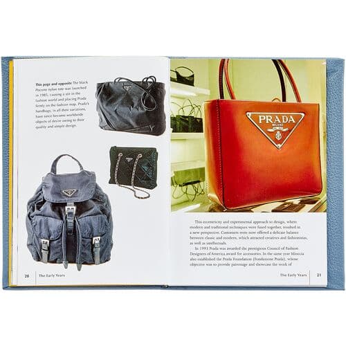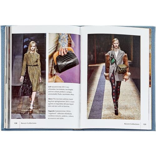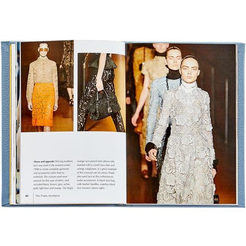 Monograph hand-bound in pebble-grain leather, celebrates Prada's elegant designs. Chronicles the Italian brand's start as a leather-goods maker with images of garments, catwalks, and fashion photography.