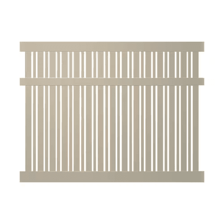 Weatherables Davenport 5 ft. H x 8 ft. W Khaki Vinyl Semi-Privacy Fence Panel Kit Upgrade your outdoor space with the Weatherables Davenport Vinyl Semi-Privacy Fence Panel Kit. Standing 5 feet tall and spanning 8 feet wide, this Khaki-colored panel offers a perfect blend of privacy and aesthetic appeal. Constructed from durable vinyl, it is designed to withstand the elements and resist fading, ensuring your yard remains protected and visually appealing with minimal maintenance.