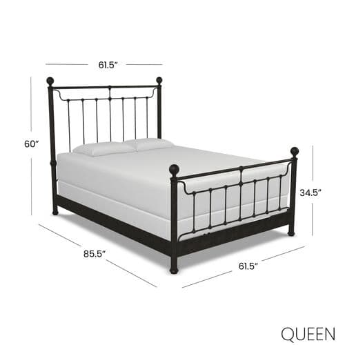 Timeless in design, this handcrafted iron bed is built to endure for many years. Its round finials and burnished finish enhance its charm. A mattress and box spring are needed. Made by hand in the USA.