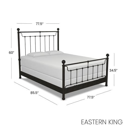 Crafted from iron, this bed not only boasts a timeless design but is also built to last for years to come. It features round finials and a rich finish that enhance its appeal. A mattress and box spring are necessary. Made in the USA.