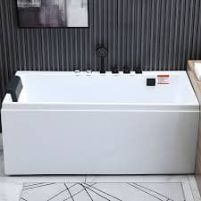 Acrylic Rectangular Bathroom Bath Tub Modern with Center Drain Tub - 51.2"L x 29.5"W x 24"H Tub with Black 5-Piece Set Massage Right