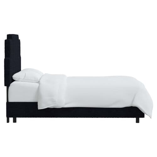 Exclusive to One Kings Lane, this USA-made bed features a bouclé-like upholstery with a Deco-influenced design, adding timeless charm to your bedroom. The headboard is generously padded for comfort and support when sitting up to read or watch TV. Requires both a mattress and box spring.