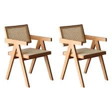 Woven Rattan Low Back Kitchen & Dining Chair with Wooden Legs - 2 Piece Set Natural With Arms Dining Chairs