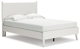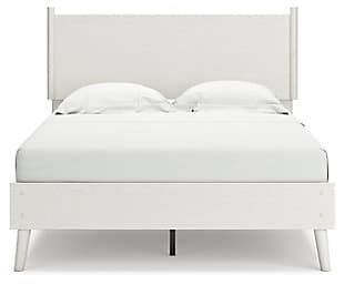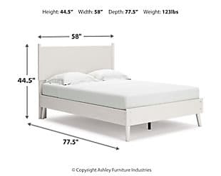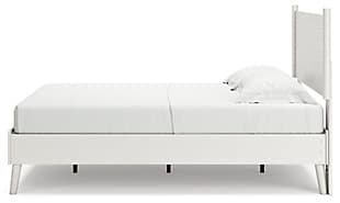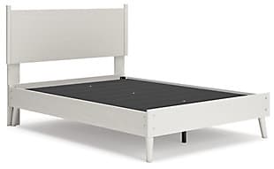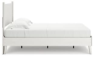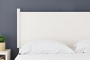 Dare to take minimalism to the max. The Aprilyn full panel bed has an air of sleek simplicity thanks to its white painted finish with subtle replicated wood grain. The headboard's optional reversible cushions are an inventive element, allowing you to choose faux leather or gray fabric to suit your space. There's no doubt about it: This contemporary piece is sure to become a classic.