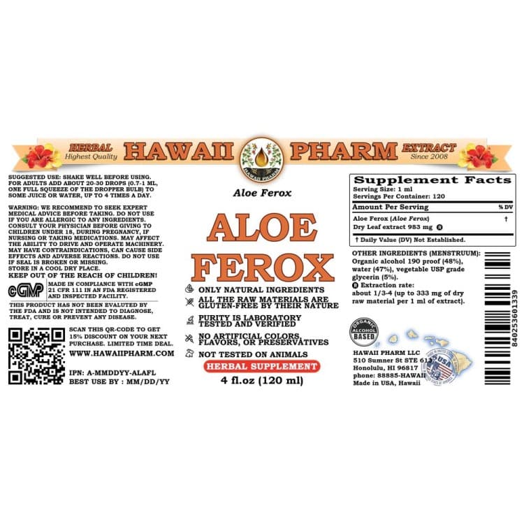 Aloe Liquid Extract, Aloe (Aloe Ferox) Dried Leaf Tincture