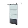 Colonial Elegance 37 in. x 84 in. Concorde Epoxy Coated Steel Frame with Frosted Tempered Glass Barn Door with Hardware Kit KMCTCCF-37BL