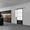 Instantly modernize your living space with the Concorde metal sliding barn door from the Metro collection. The combination of contemporary design with an industrial influence will be sure to make a statement in any room of your home. Using only quality materials such as tempered glass and powder coated steel frame, paired with a sturdy rail system, this door will help to convert your living space into a functional masterpiece.