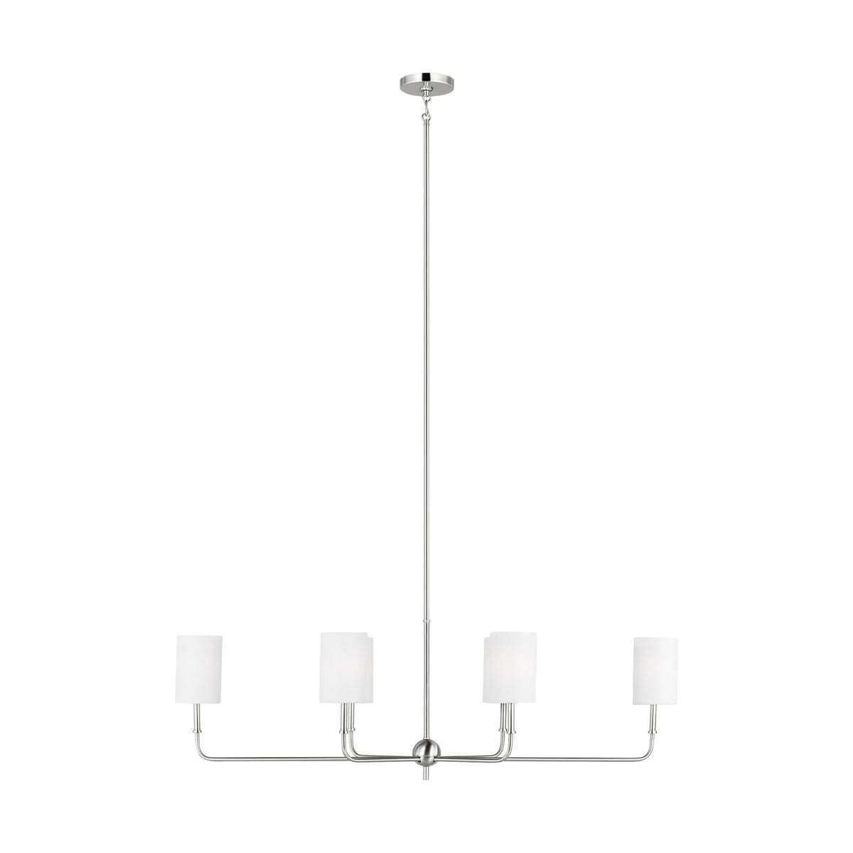 The Foxdale six light linear chandelier in brushed nickel silver encompasses the new traditional style with flawless execution. Refined and clean-lined, this classic silhouette is timeless without being stuffy. Perfectly transitional, this collection can be placed in any home regardless of style. Topped with White Linen Shades to complete the design. Six Light Chandelier from the Foxdale collection in Brushed Nickel finish
