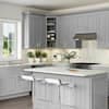 Grayson pearl gray from Home Decorators Collection is a transitional shaker door style featuring a square raised center panel. 3/4 in. thick MDF door with 3 in. outer styles and rails. Soft gray painted finish. Decorative drawer fronts standard. Soften your space and create a transitional look for many years. This collection features as soft close doors and drawers and full depth shelves.