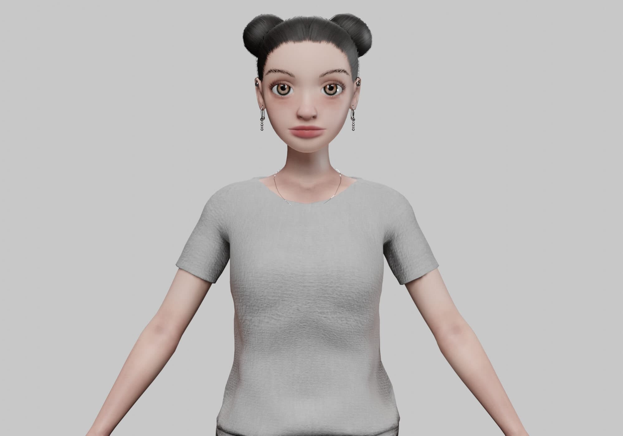 stylized young girl V21193 The files contain one: - stylized young girl - multiple textures All objects in the images are included. It is fully available as blender, fbx and obj file with texture folder. 21193 vertices and 21463 faces. All 3d models were modeled in Blender. You may use it according to the license.