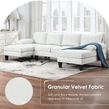 Amazon.com: EOVTK 112" U-Shaped Sectional Sofa with Double Chaise Lounge, Modern Velvet 6-Seat Sleeper Couch for Living Room, Apartment, Beige : Home & Kitchen
