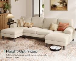 Amazon.com: LINSY HOME Convertible Sectional Couch, Corduroy U-Shaped Sofa Couch with Double Chaises and Sleepable Armrests, 4-Seat Deep Sofa Set for Living Room, Beige : Home & Kitchen