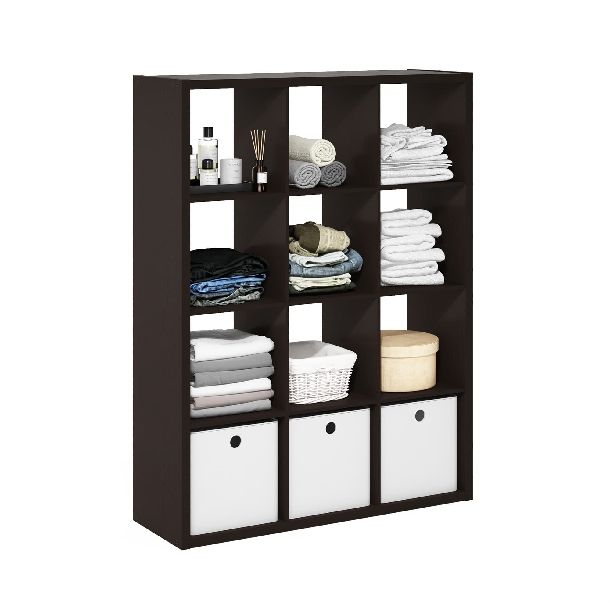 Furinno Cubicle Open Back Decorative Cube Storage Organizer, 12-Cube, White