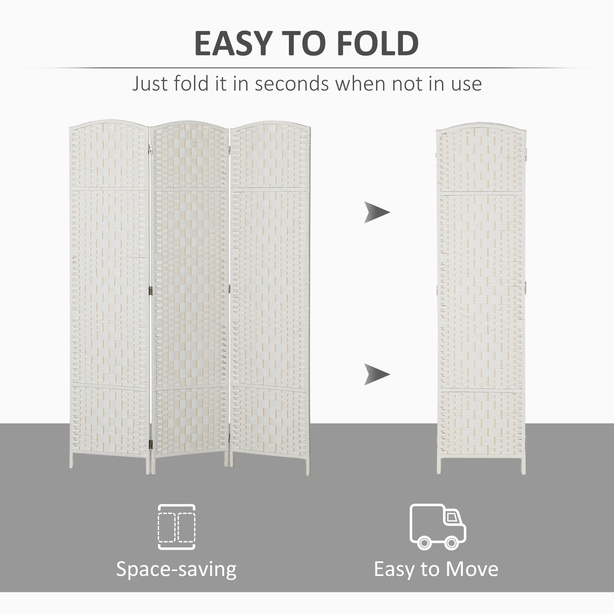This wicker temporary wall from HOMCOM is the optimal solution for any room where additional temporary privacy is needed without sacrificing style and aesthetics. This free standing room divider is built on a poplar wood frame and features a stylish diamond rattan weave design. Use it to divide an entire room, or create a smaller enclosed private space within a corner or along a wall. With dual directional hinges, this privacy wall is easy to adjust or fold away for storage when not in use.