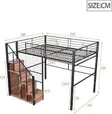 Dolamaní Ripiano per letto a soppalco, 140 x 200 cm, con scala per bambini e adulti, letto in metallo con protezione antigroviglio di sicurezza, grande spazio sotto il letto, nero : Amazon.it: Casa e cucina