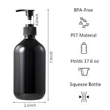 Amazon.com: Amorettise 6 Pack Plastic Pump Bottles Dispenser, 16oz/500ml Empty Cylinder Shampoo Soap Dispenser, Refillable Containers with Extra Sprayer Pump Labels for Body Wash, Lotion, Gel(Black) : Beauty & Personal Care