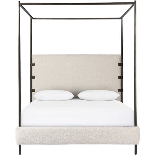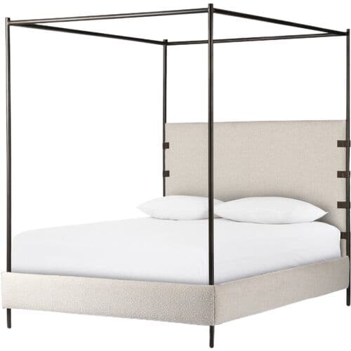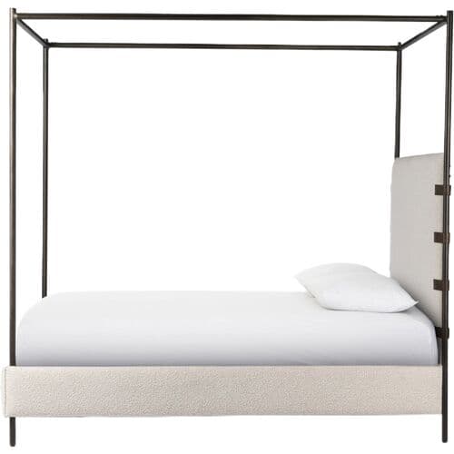 Winslow Boucle Canopy Bed - Brown | Poster Bed, Draped Bed