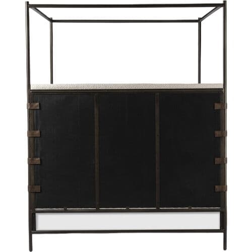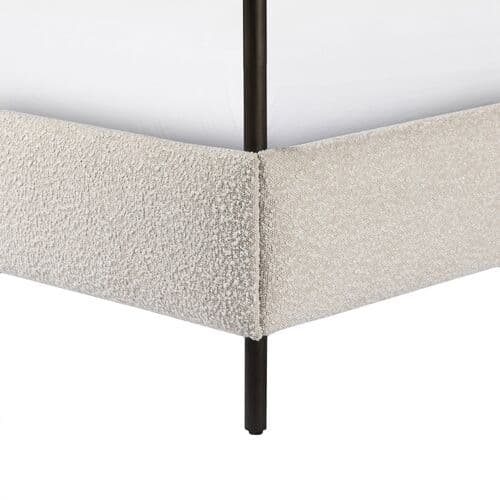 Bring texture into play with the Winslow Canopy Bed. This iron canopy bed features a headboard upholstered in a fabric that adds a touch of elegance and sophistication. Designed with a focus on material-driven contrast, it requires a standard box spring and is not compatible with an adjustable mattress. Elevate your bedroom with this beautifully crafted piece that seamlessly blends style and functionality.