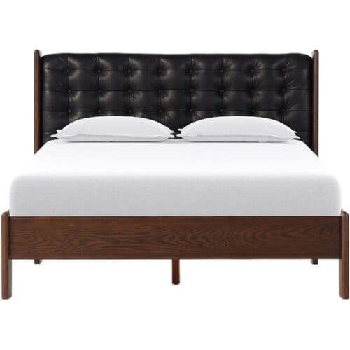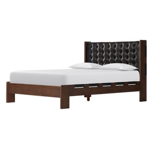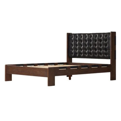 Bold lines, a wide frame, and heavy tufting speak to the Brazilian midcentury inspiration behind this exquisite bed. Crafted from brown ash and top-grain leather, the heirloom leather is sourced from one of the oldest family-owned tanneries in Italy's Bassano del Grappa. The leather is salvaged and processed from upcycled hides, showcasing an abundance of natural markings, scars, and color variations. The result is beautifully supple, buttery soft hides with unmatched depth of color and richness, offering an authentic lived-in look.